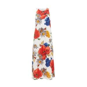 "Sure to turn heads wherever you go, the Crimson Poppy Cotton Linen Portia Dress is truly one of a kind. There are so many gorgeous details here that we don't know where to start! Our favorite might be the exaggerated yet elegant bow details on the back that adds a dramatic twist. With a flattering A-line silhouette that can work for every occasion and every body type, we love styling this maxi with heels and clutch for warm weather weddings and elevated events alike.