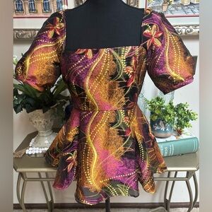 TUCKERNUCK FLORAL JACQUARD FIT & FLARE PUFF SLEEVE BABYDOLL BLOUSE SZ SM NWOT