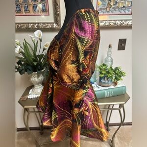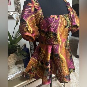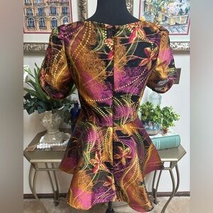 Elevate your style with this TUCKERNUCK high- low vibrant women's top featuring a stunning mix of colors. Perfect for all of your special occasions,this top adds a pop of color to your wardrobe. Features a fit and flare style , lined bust area , square neckline , & a hidden back zipper. This gorgeous blouse is New Without Tags!Measurements 17” ptp, 27.5 “ high low back length