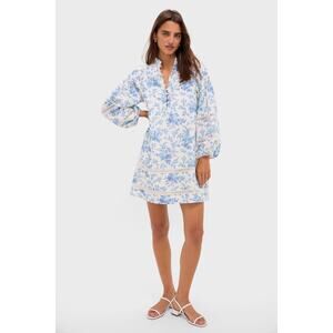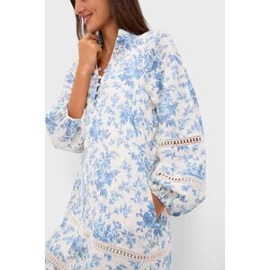 TUCKERNUCK Forget Me Not Floral Cotton Linen Mini Maryse Caftan Size L NWT
