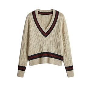 Perfectly preppy. the Stripe Metallic Morrissey Sweater adds major style cred to your fall wardrobe. With a relaxed fit. cable knit texture. and woven metallic detail. this sweater can be dressed up or down. We chose to style it with jeans. penny loafers. and a tote for day or trousers. heels. and a mini bag for a more elevated look.