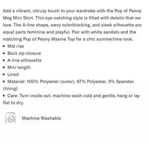 Add a vibrant, citrusy touch to your wardrobe with the Lemondrop Meg Mini Skirt Size Medium. This eye-catching style is filled with details that we love. The A-line shape, wavy color blocking, and sleek silhouette are equal parts feminine and playful. Pair with white sandals and the matching Lemondrop Maxine Top for a chic summertime look.