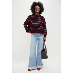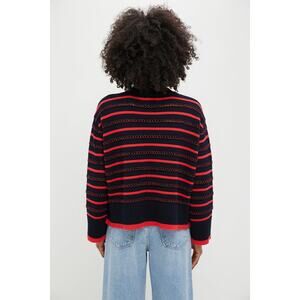 TUCKERNUCK Navy and Red Pointelle Stripe Maxine Sweater Size L NWT