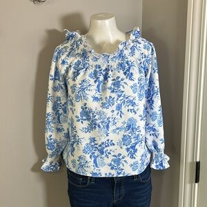 TUCKERNUCK Off the Shoulder Marguerite Blouse Majolica Blue White Floral Sz XS