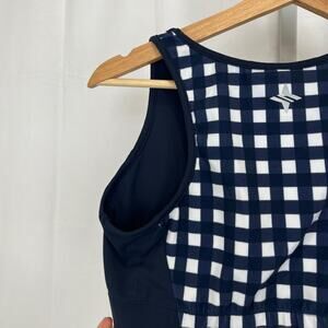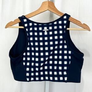 TUCKERNUCK Trellis Sports Bra Gingham Check Navy Blue White Size M