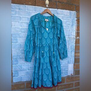 TUCKERNUCK Tropical Teal Lantern Block Print Tie Neck Coverup Dress Size Medium