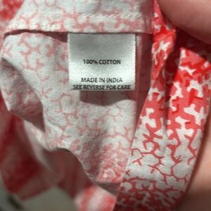 Tuckernuck marsielle coral mini dress. Tie neck with small opening in chest. It. An be worn open or closed. Slight bell sleeve, not full length. No callouts to note. Stock photo added for reference.