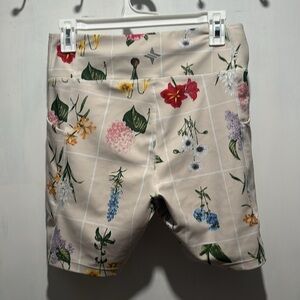 Tuckernuck floral biker shorts. High waist and hit about mid thigh. No callouts to note. Two side pockets.