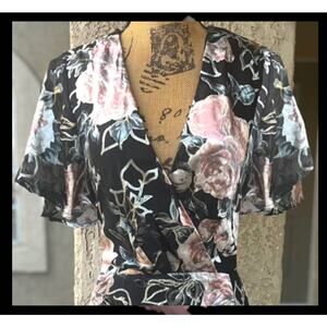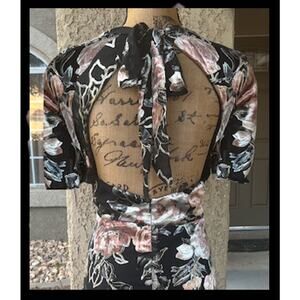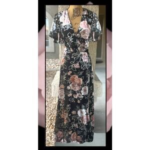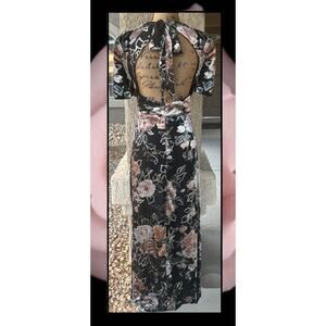 TUE Lulus Black Velvet Floral Glittering Gold Tie-Back Maxi Dress Size XL