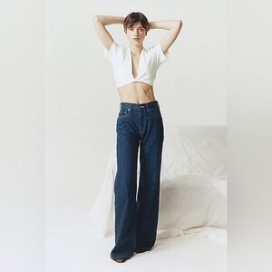 The Larimar Jean is a comfortable update to a classic bootcut silhouette. Expertly designed to give a flattering, elongated look, this high-rise style is relaxed through the hips and thighs and flared through the legs. Each pair is detailed with signature gold plated buttons and a custom buttonhole stitch in larimar.