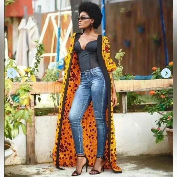 TUFAFII Vibrant Long Open Kimono Jacket Created by African Artisans NWT Size M