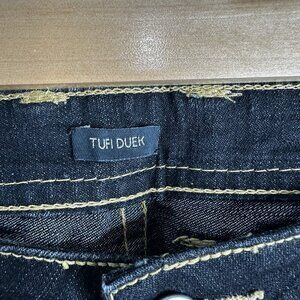 TUFI DUEK Jeans Denim Flare Leg Belted Pants Womens 42 Dark Wash Brazil Y2K 90s