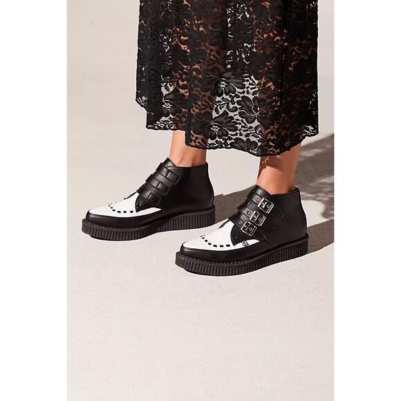 TUK 3 buckle pointed creeper boots black and white unisex sz 9W 7M NWOT