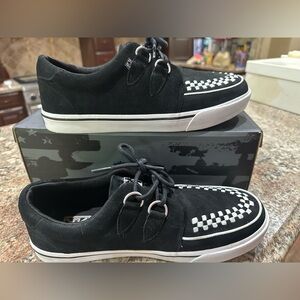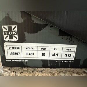 Classic black sneakers by T.U.K. With the checkered interwoven pattern on the top. Comes in box, I think I wore them once. Women’s 10 & Men’s 8. Fits true to size. Thanks for looking!