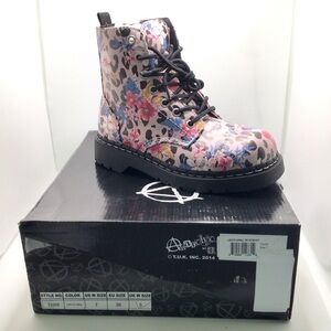 TUK Footwear Womens Floral Leopard Print Combat Boots Size 7. New in box. From smoke free home.