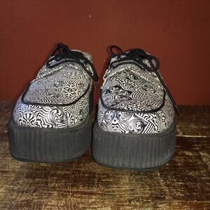Retro 90s Vibes! TUK Creepers in color Black/White. Mens size 7, Womens size 9, EU 40. Lace up. 1 7/8" platform. Some wear to inside side back of both shoes. Some peeling on side lining, not visible from outside and does not effect wear.