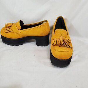 T.U.K. Mustard Faux Suede Fringe Loafer Platform TUK yellow