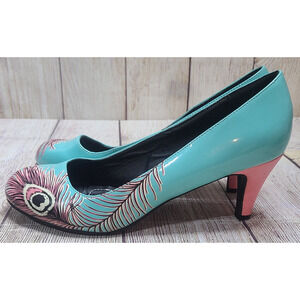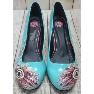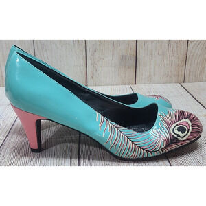 T.U.K. Peacock Feather High Heel Shoes Women's US Size 11 Pink Blue Black 2013