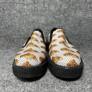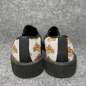 T.U.K Shoes Womens Size 7 White Black Creeper Slip-On Platform Pizza Print EU38