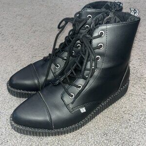 T.U.K. TUKskin POINTED TOE LACE UP BOOTS - SIDE ZIP- MEN'S 8 / WOMEN'S 10 - EUC