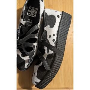 TUK platform creepers Black & White Cow Print 3-Strap Pointed Mary Jane sz 9
