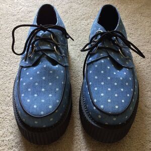 T.U.K Unisex Blue and White Denim Polka Dot Viva Mondo Creeper Platforms