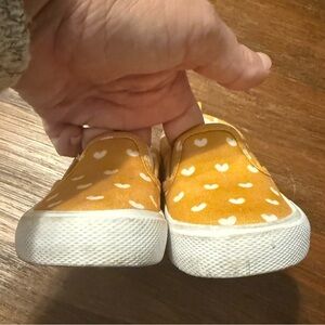 TULA Toddler Girl Slip On Canvas Shoes, Yellow with White Hearts, size 5