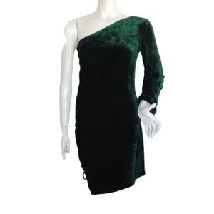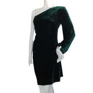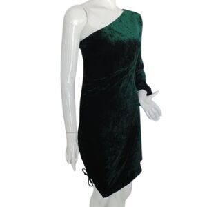TULAROSA Dress, M, Forest Green, Paula Crushed Velvet, One shoulder,