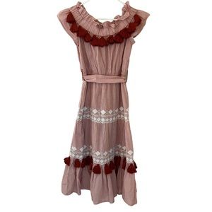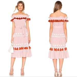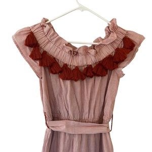 TULAROSA Dress Womens Small Revolve Lana Getty Stripe Tassel Boho Midi Flirty