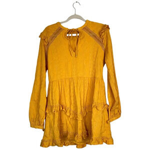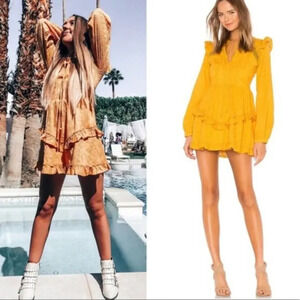 TULAROSA Lisa Blouson Sleeve Embroidered Dress Mustard Yellow Size Large Revolve