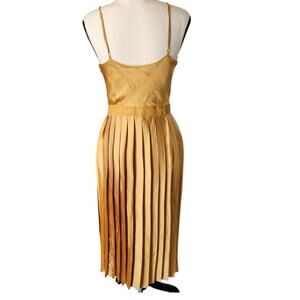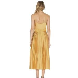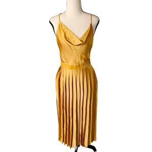 TULAROSA Mel Marigold Yellow Silky Pleated Cocktail Party Dress Midi Size Small