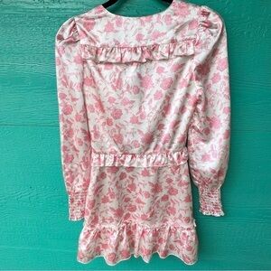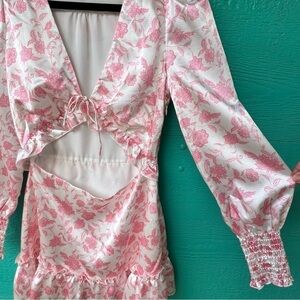 Revolve Tularosa Satin pink and white floral long sleeve Coquette mini dress.