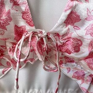 TULAROSA PINK & WHITE FLORAL SATIN RUFFLE MIDRIFF CUTOUT MINI DRESS SZ SMALL EUC