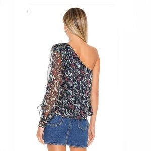 TULAROSA Rhea Sheer Floral One Shoulder Top in Navy Blue Size S
