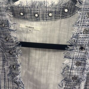TULAROSA Brand NEW - Fringed Plaid Wrap Top - Blue Estelle Top - Size Small NWOT