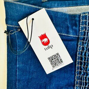 TULIP BLUE DENIM BUSTIER CORSET STYLE STRAPLESS RAW EDGE CROP TUBE TOP