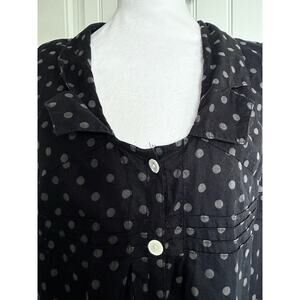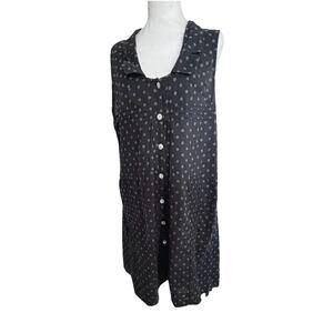 TULIP Dress Navy Blue Gray Polka Dot 100% Cotton Lg High Low Cottage Coastal