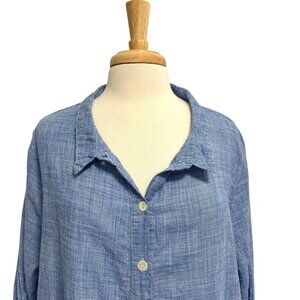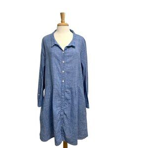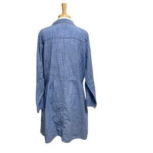 TULIP Shirt Dress Long Sleeve Button Front Lagenlook Pockets Blue size XL