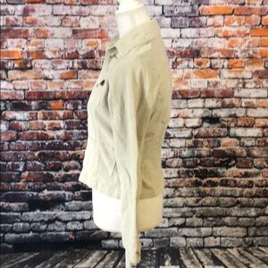 TULLE ANTHROPOLOGY - WOMENS CREAM COLORED CORDUROY JACKET - 2 UPPER POCKETS AND 2 LOWER POCKETS - BUTTONS UP THE FRONT - SLEEVES BUTTON - COLLAR - SIZE SMALL - ARMPIT TO ARMPIT 19” LENGTH FROM SHOULDER 20” BOTTOM OF JACKET 17”