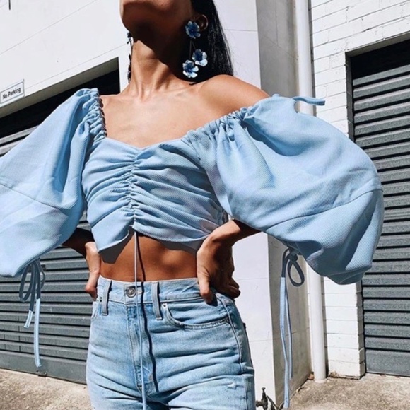 Billowy off-the-shoulder crop top. Never been worn, new with tags.