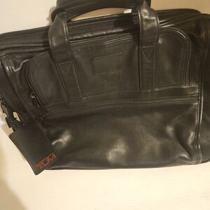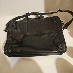 TUMI Alpha Black Leather Laptop Business Commuter Bag 9601D3