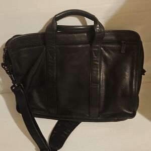TUMI Alpha Black Leather Laptop Business Commuter Bag 9601D3