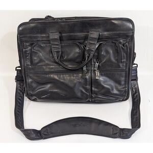TUMI Alpha Expandable Large Leather Briefcase Laptop Messenger Shoulder Bag