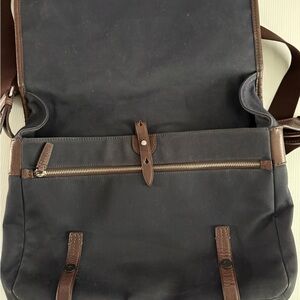 TUMI Black Canvas Medium Crossbody Messenger Bag Leather Strap