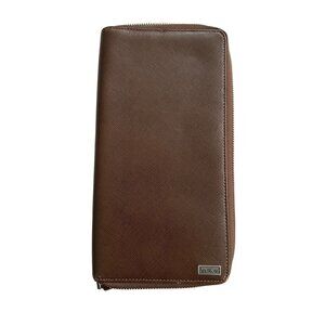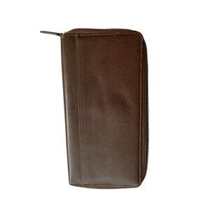 TUMI Brown Leather Oversize Travel Zip Wallet