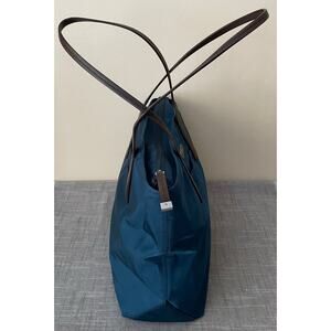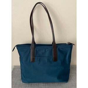 TUMI Brown Leather Trim Teal Nylon Q-Tote Bag