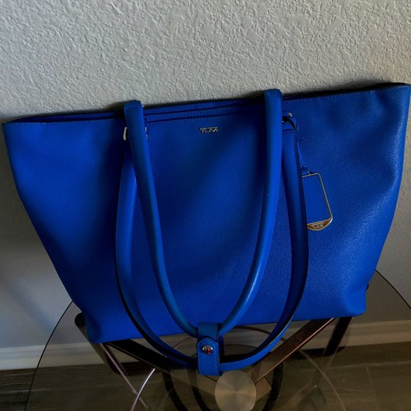TUMI Everyday Tote Voyageur Blue Used, Nylon, Zip pocket, Media pocket, Pen loop, Key leash, TUMI Tracer®, Zip entry to main compartment, Leather handles, Add-a-Bag sleeve, 4 metal feet, Monogrammable detachable leather key ring