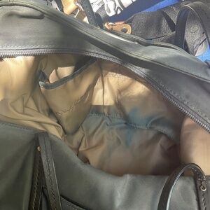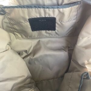 Good Condition! Clean Inside & Out. There is a Large Area With a Blue Stain Inside of Bag. One Spot on Outer Right Lower Side of Bag. Cleaned But Unable To Remove. Please See Pictures. Still, Bag is Fully Functional and of TUMI Quality! NO Long Strap Included.