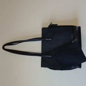 TUMI Vintage Tote Bag | Black Leather & Heavy Canvas