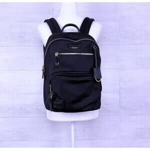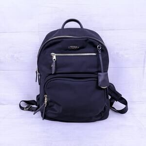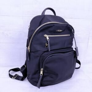 TUMI Voyageur Carson Womens Laptop Backpack Black Nylon Gold Hardware Travel